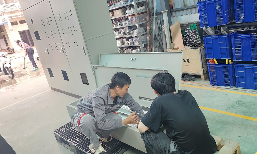 Lắp đặt tủ điện: Sau khi thiết kế hoàn thành, tủ điện được lắp đặt và kết nối với các thiết bị và mạch điện trong hệ thống xử lý nước thải. Các kết nối điện được thực hiện chính xác để đảm bảo tín hiệu và nguồn điện được truyền đúng cách.